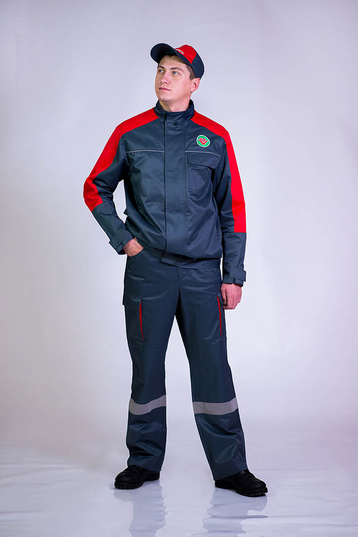 Модель 317-1-20 Комплектация куртка, брюки Ткань «Диорит-М» Застежка центральная на молнию Воротник стойка Карман куртка: верхний накладной с клапаном, боковой прорезной; брюки: боковой с отрезным бочком, нижний накладной с клапаном Светоотражатель лента 50 мм Защитные элементы манжет, наколенник
