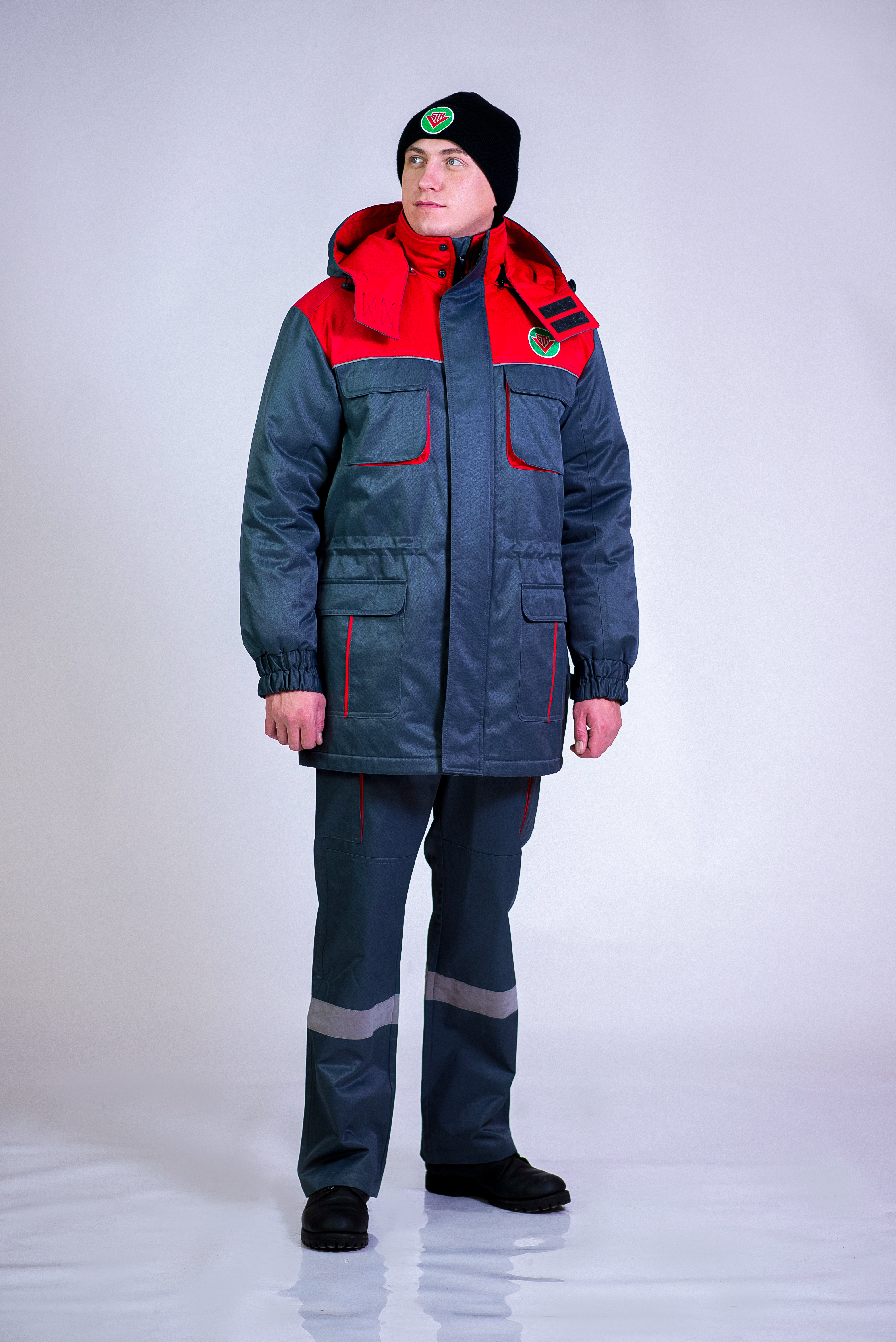 Модель 321-1-20 Комплектация куртка,брюки Ткань "Диорит-М" Застежка центральная на молнии Воротник стойка Карман накладной, прорезной Светоотражатель лента 50мм