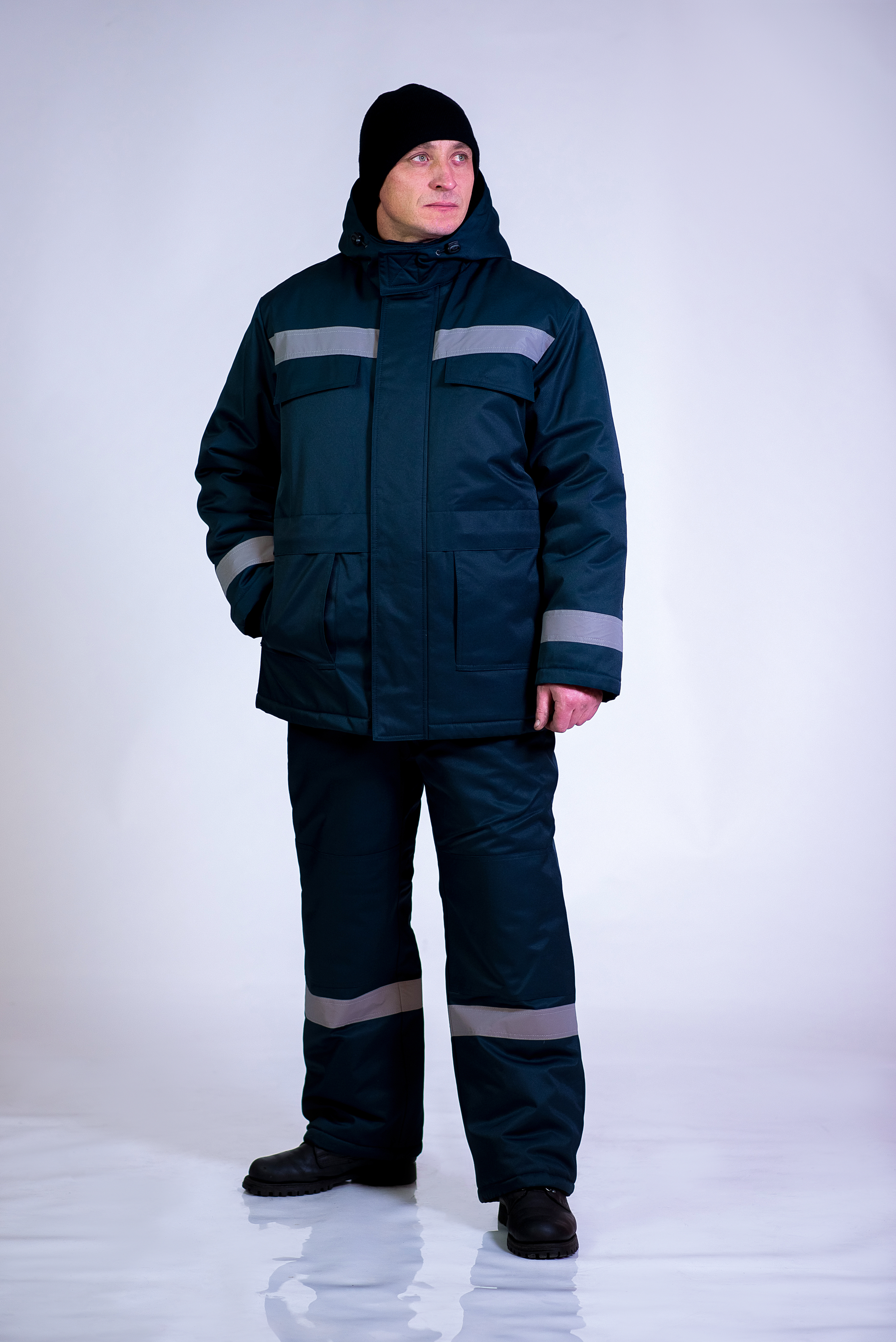 Модель 361-19 Комплектация куртка, полукомбинезон Ткань "Грета" Застежка центральная на молнии Воротник стойка Карман прорезные Защитные элементы манжет, наколенник Капюшон съемный на молнии