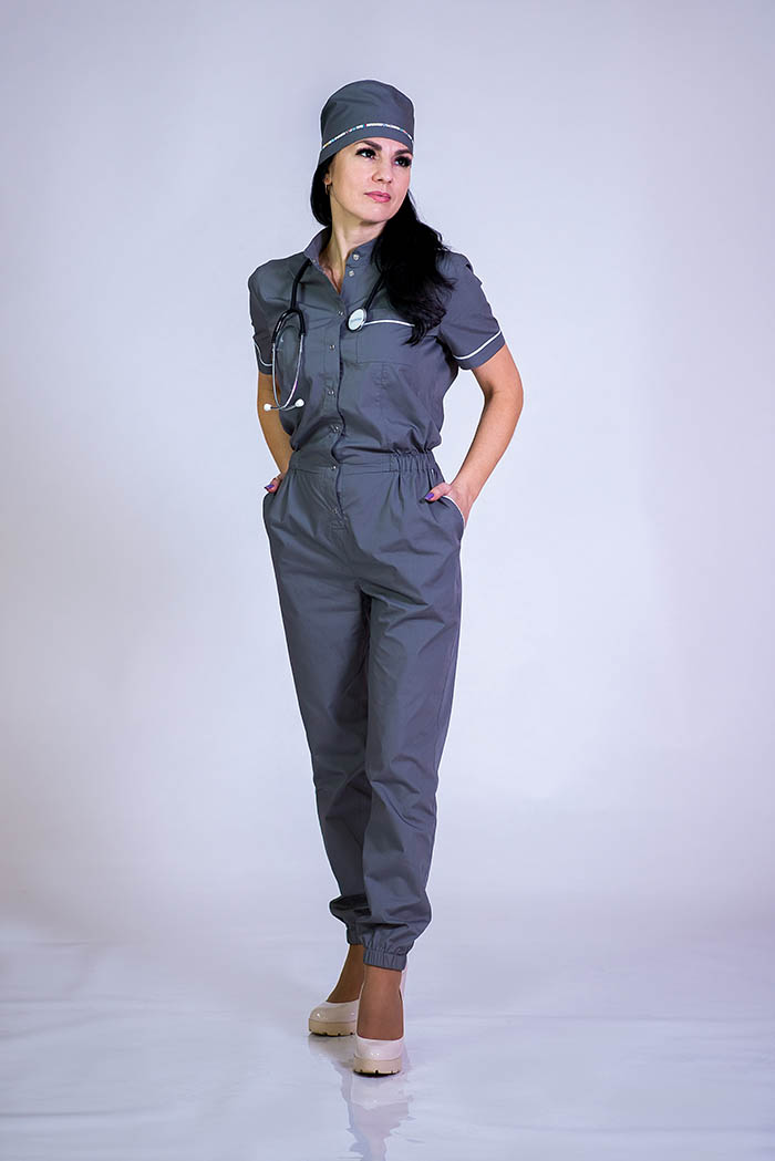 Модель 604-21 Комплектация комбинезон, колпак Ткань «Люкс» Застежка центральная на кнопки Воротник стойка Карман куртка: верхний накладной, нижний боковой наклонный