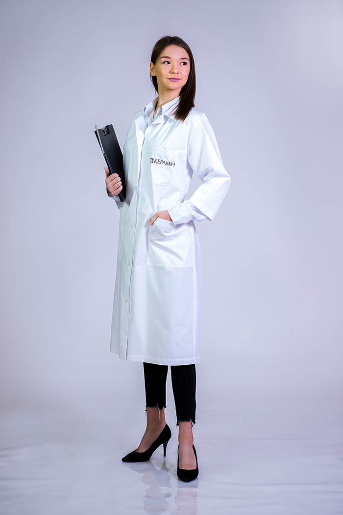 Модель 193-21 Комплектация халат Ткань «Панацея Catton Rich» Застежка центральная на петли и пуговицы Воротник отложной Карман куртка: верхний накладной, нижний накладной
